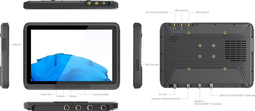 • 10.1-inch screen, 700cd/m² high brightness display, multiple-point touch panel and customized keys , ensuring outdoor worker visibility.