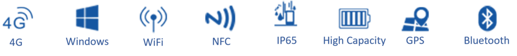 • IP65 dustproof and waterproof for whole tablet, morphed to endure outdoor applications prone with shock, vibration and extreme temperature.