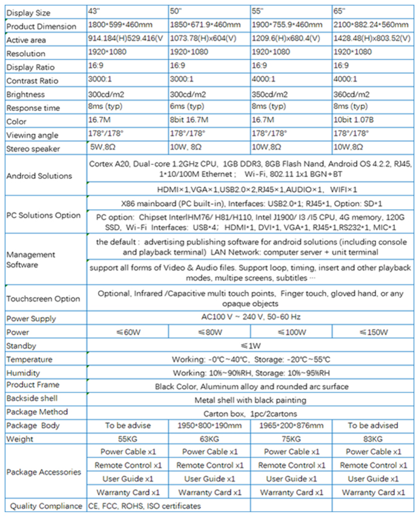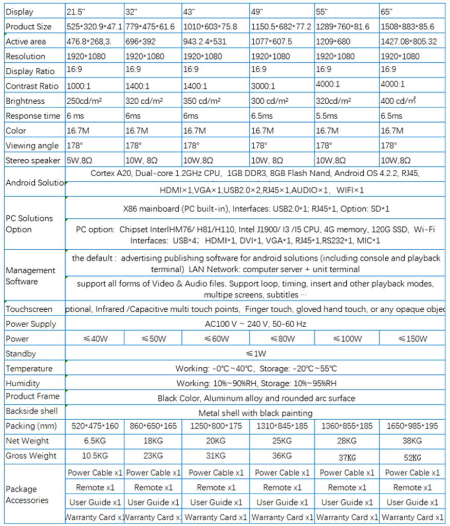 Either Windows or Android, with or without touch, narrow bezel or slim profile, high resolution or high brightness, GloriousLink (abbr. GLi) dedicated team is all ready for your different requests. Moreover, remote monitoring, content management system, and others are available as options.